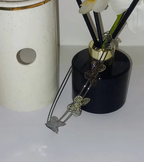 Serre tête en fer de couleur argent avec des papillons